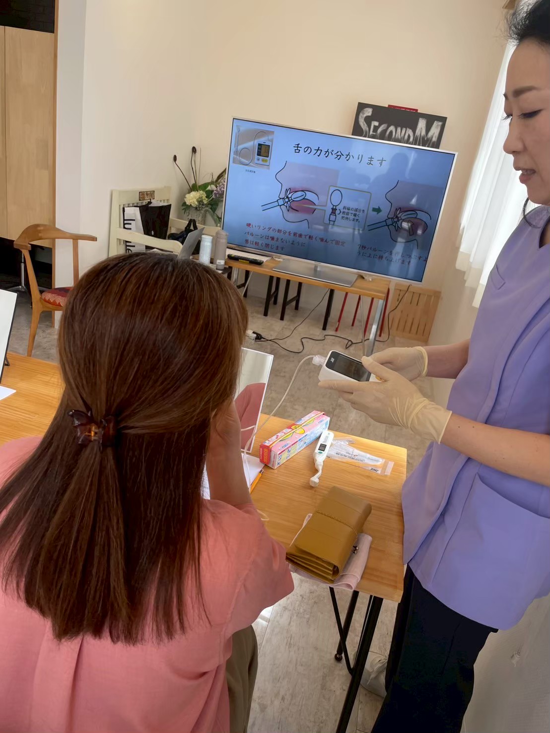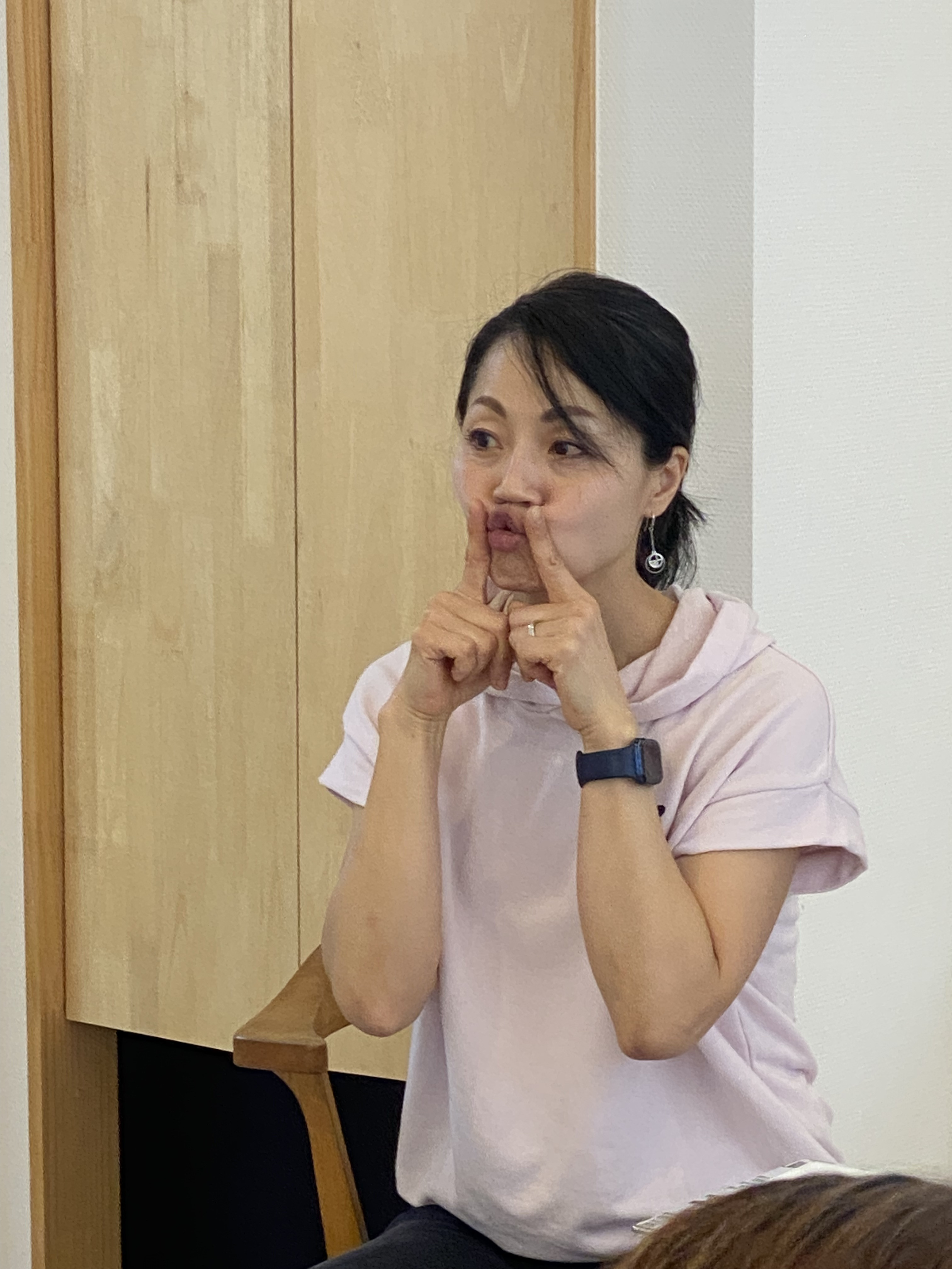正しい呼吸を⾏う時に⼤事なのが「⾆」ってことを体験してもらいながら、普段の⽣活の中 で、
